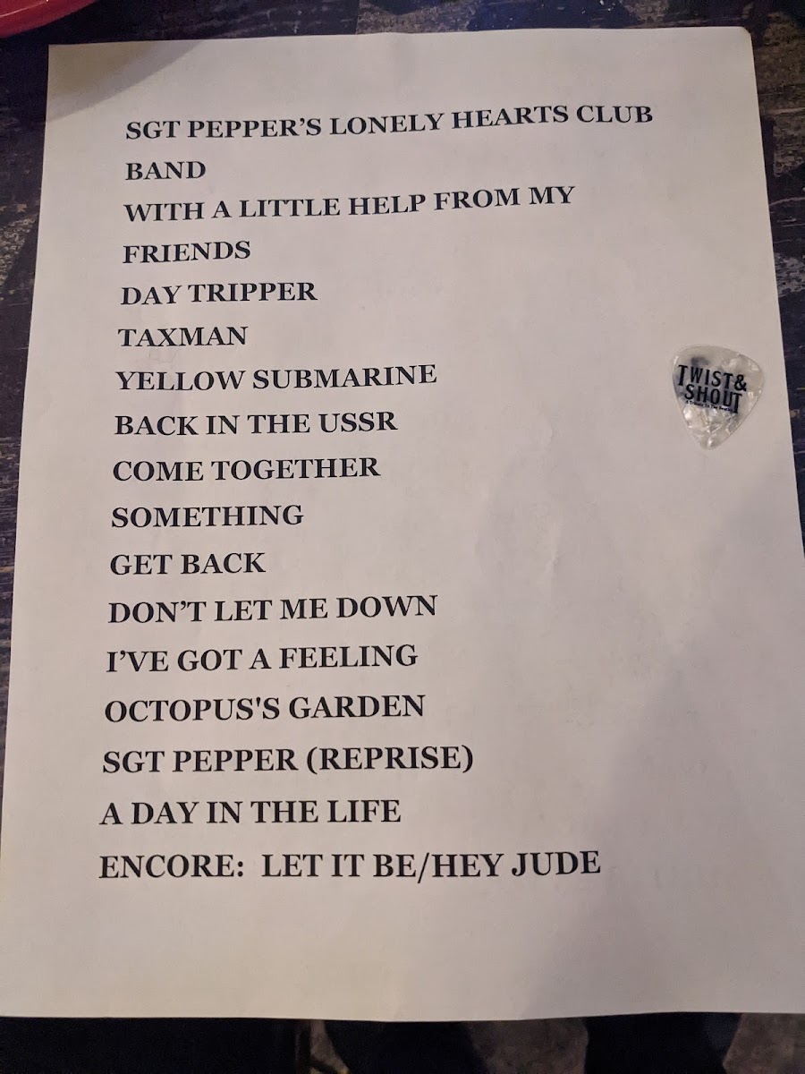 two eggs, two sausage links, two strips of bacon, pinto beans, Range Fries and a short stack of pancakes